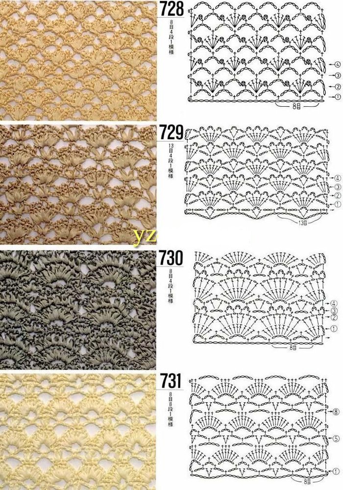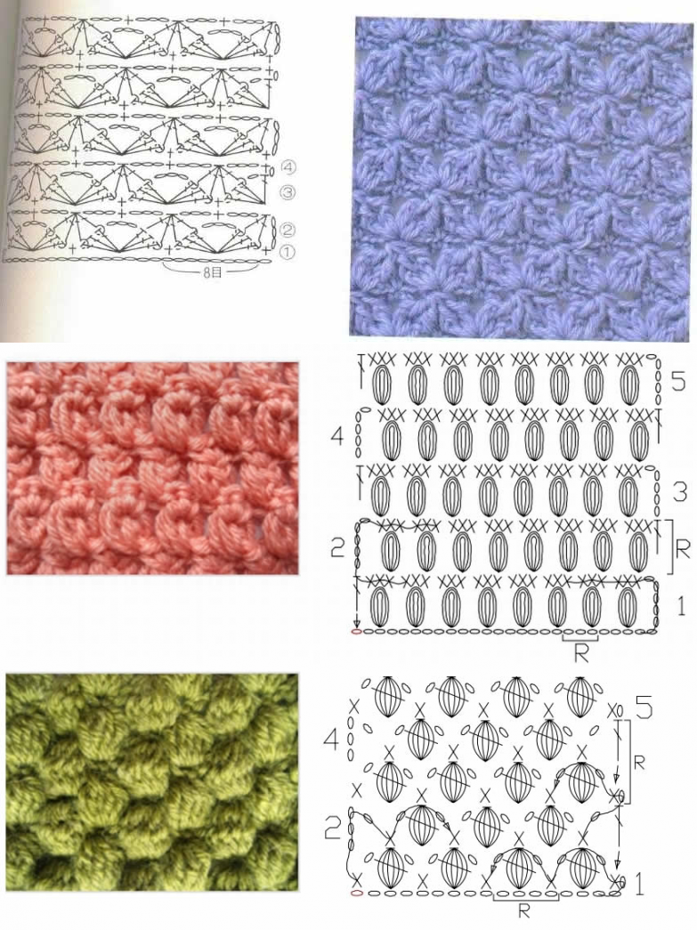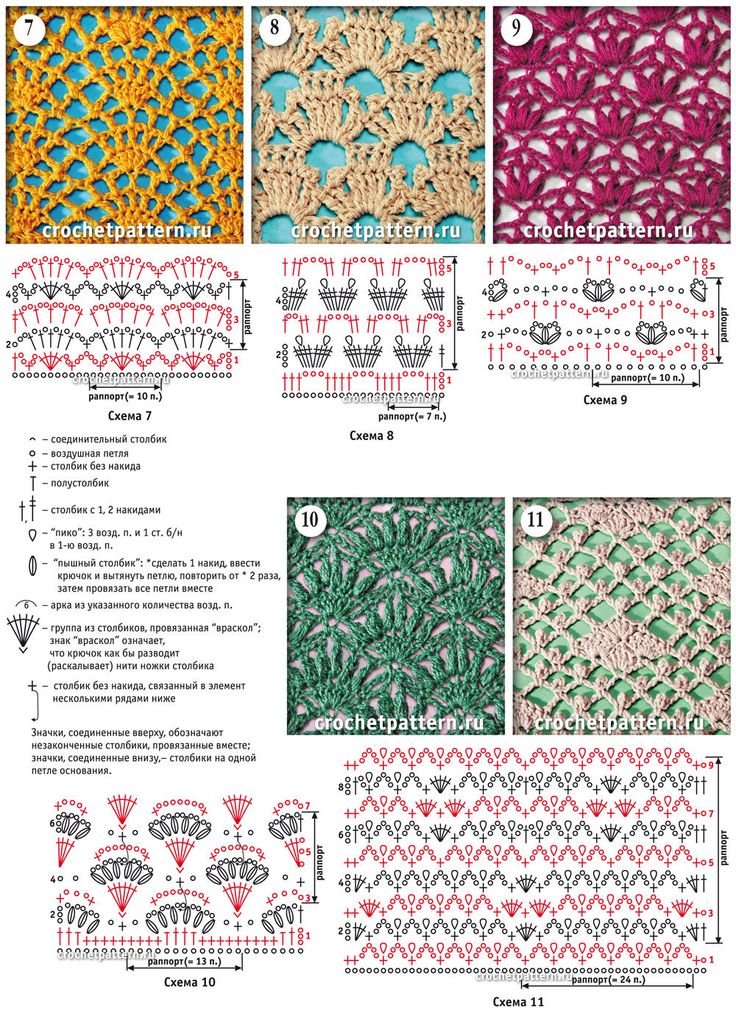 Вязаные узоры крючком со схемами