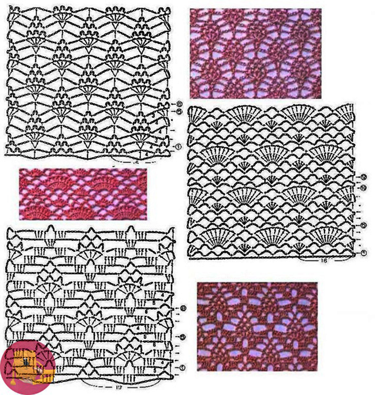 ![Узоры крючком со схемами]()
