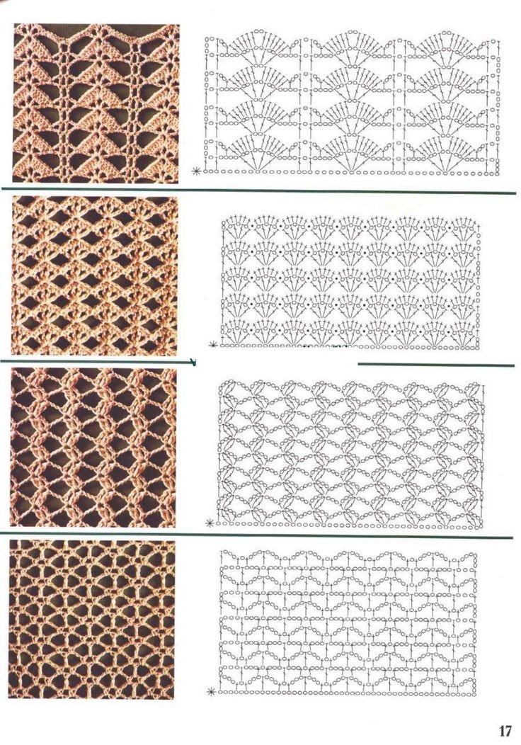 ![Схемы вязания крючком ажурных узоров]()