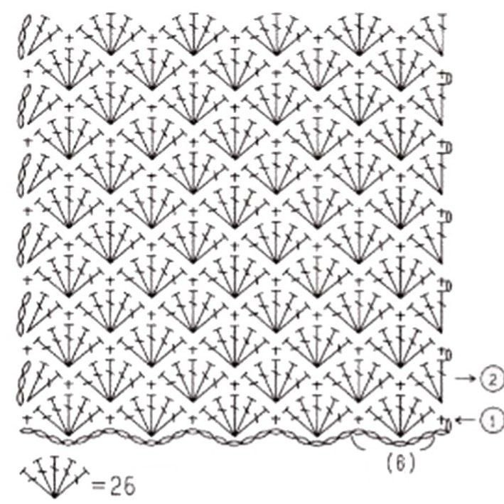 ![Ажурный узор веерочки крючком]()