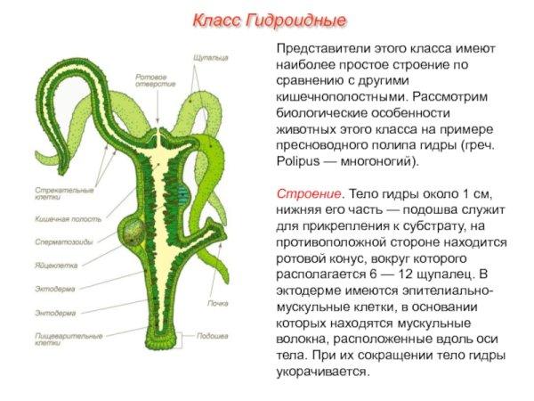 Строение гидры Кишечнополостные