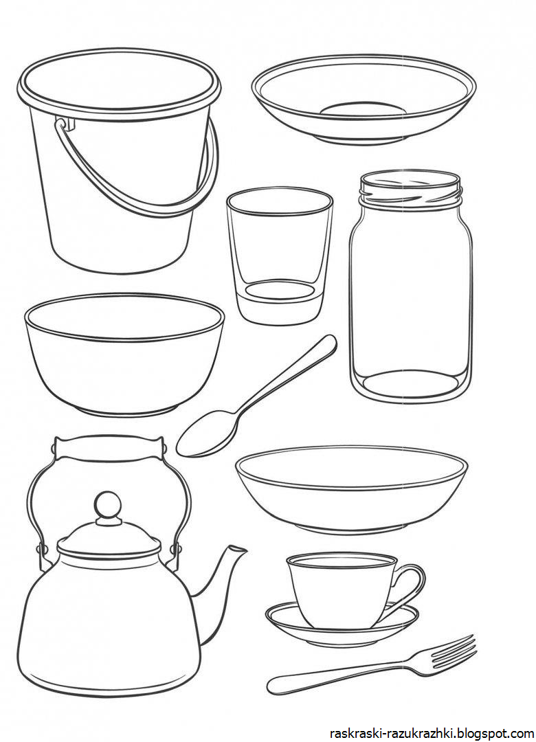 ![Посуда раскраска для детей]()