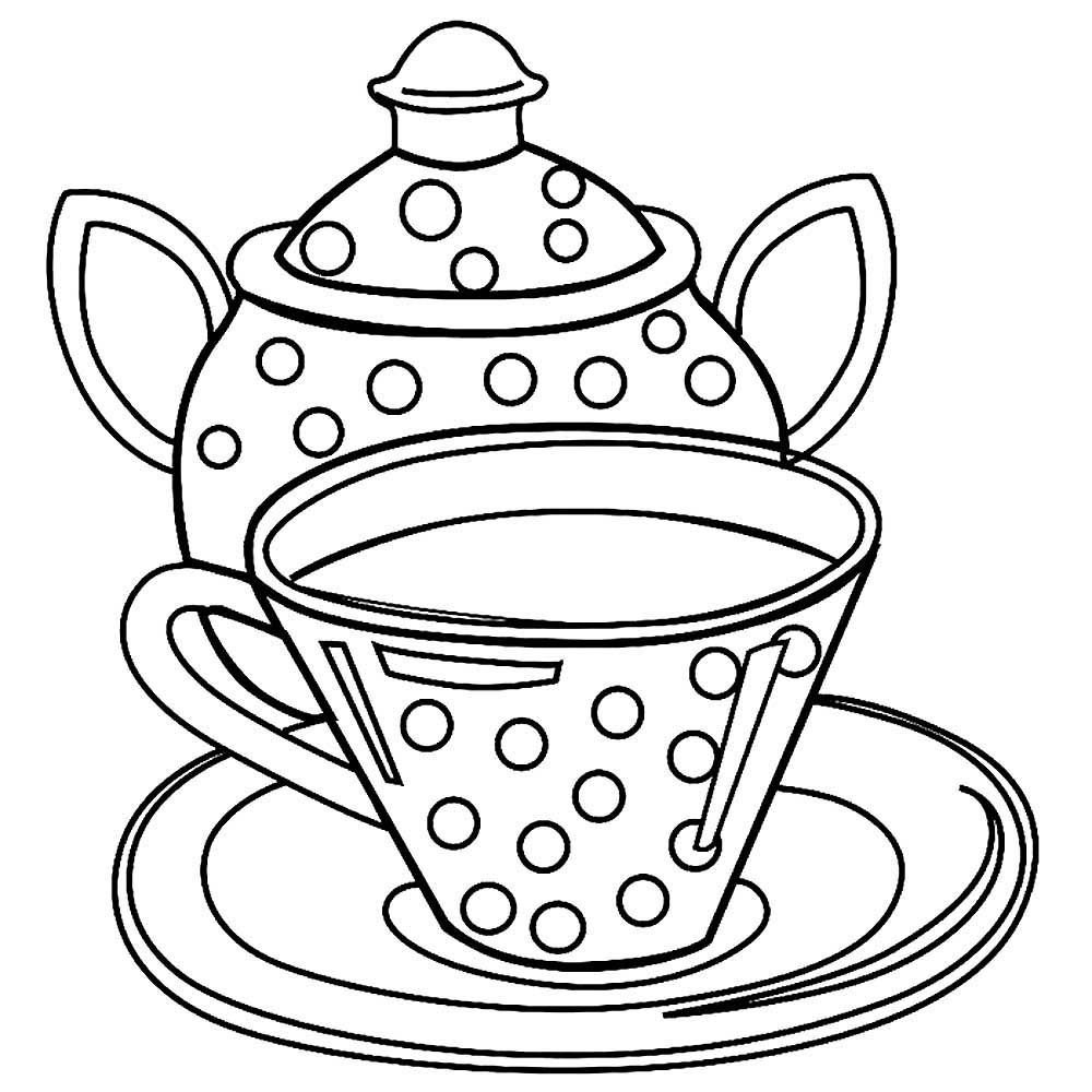 ![Чайная посуда раскраска для детей]()