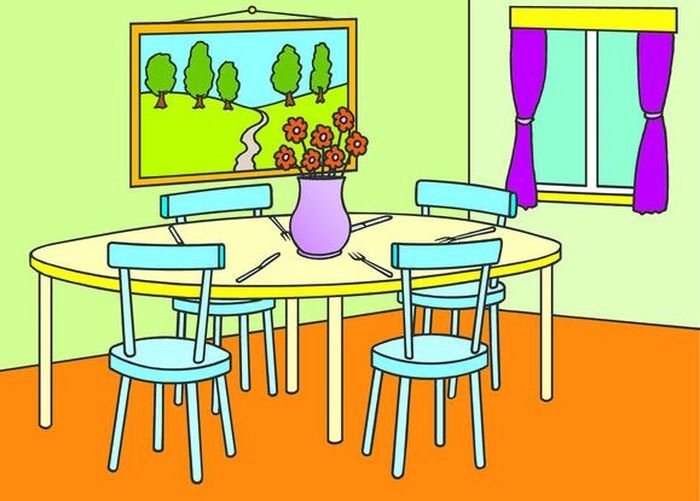 ![Мультяшная столовая комната]()