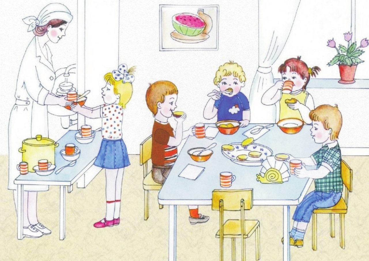 ![Обед детский сад мультяшный]()