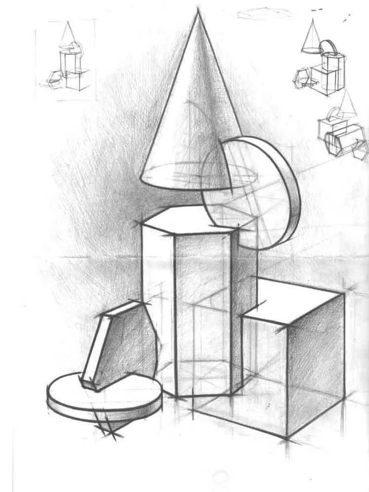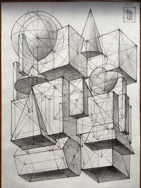 ![Геометрические предметы в перспективе]()