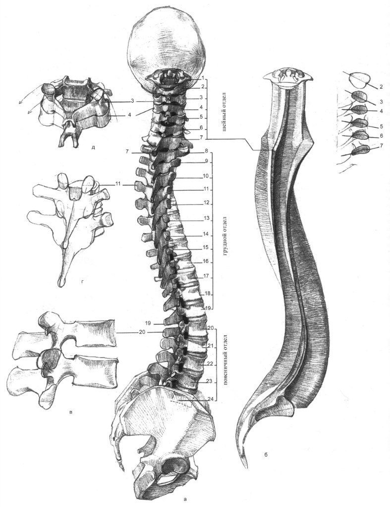 Строение позвоночника вид сбоку