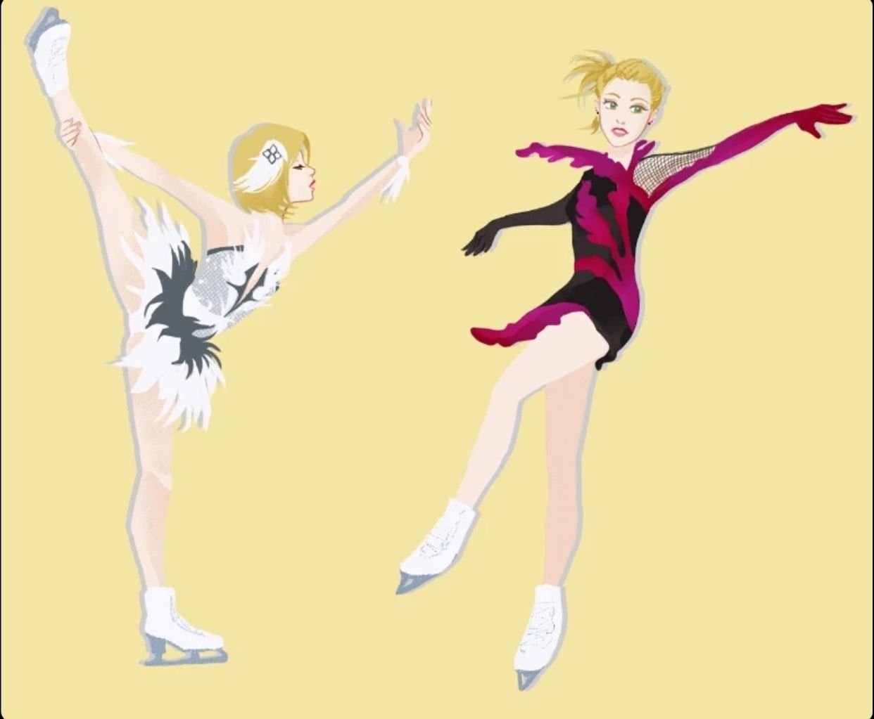 ![Мультяшные фигуристы]()