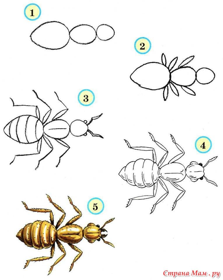 Поэтапное рисование насекомых для дошкольников