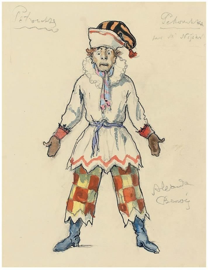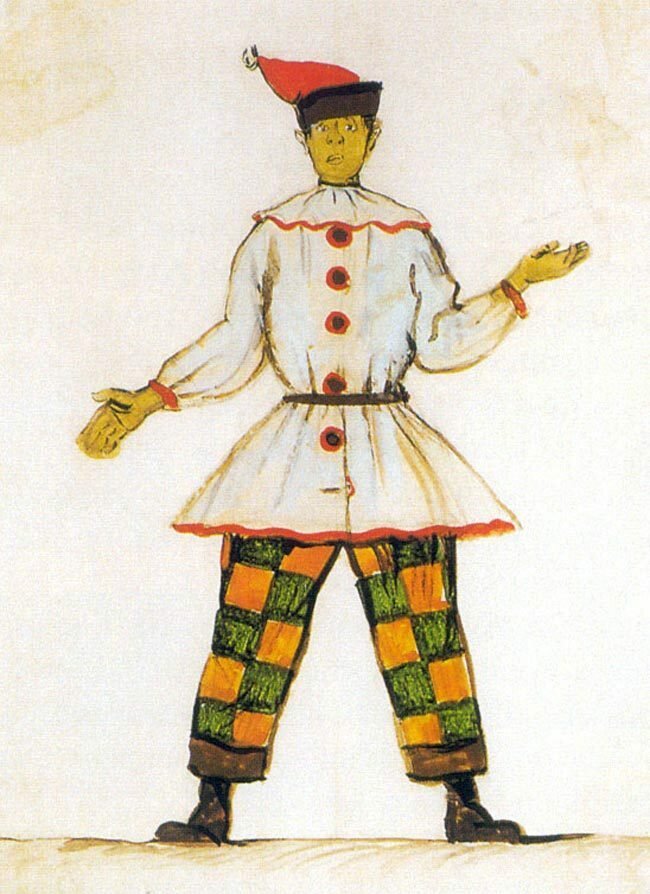 ![Эскиз костюма петрушки к балету и.Стравинского петрушка]()