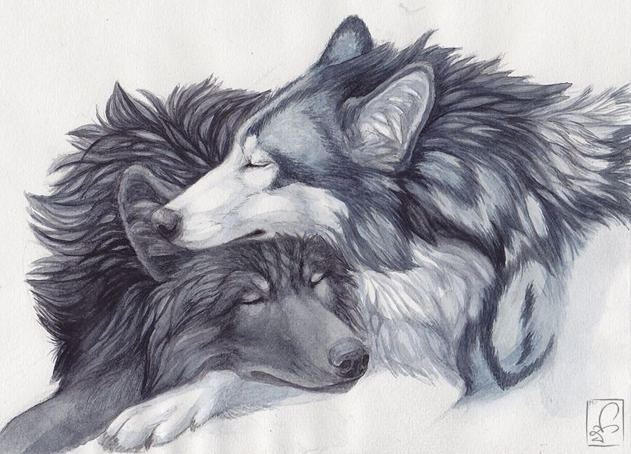 Волк и волчица рисунок карандашом