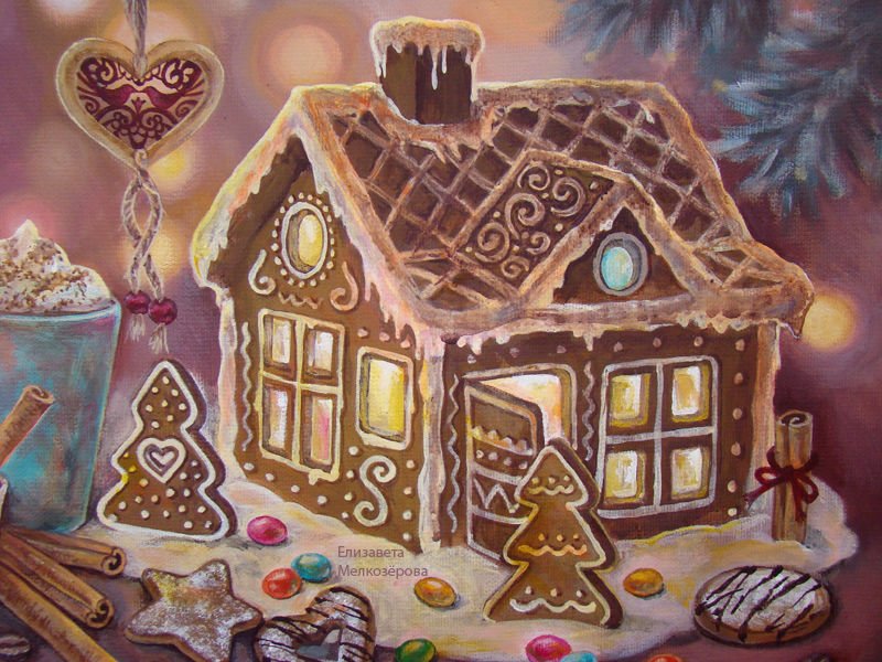 ![Пряничный домик красками]()