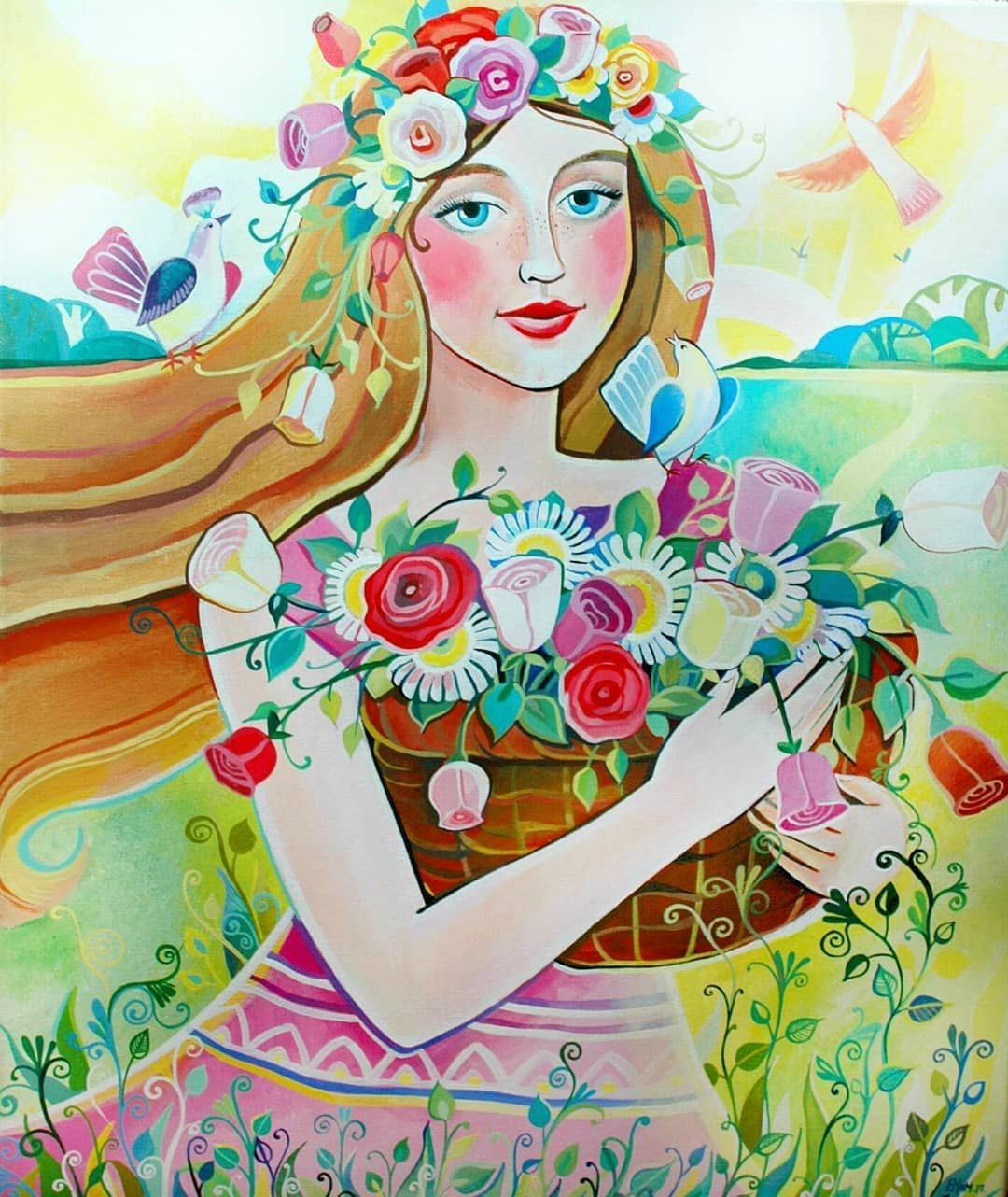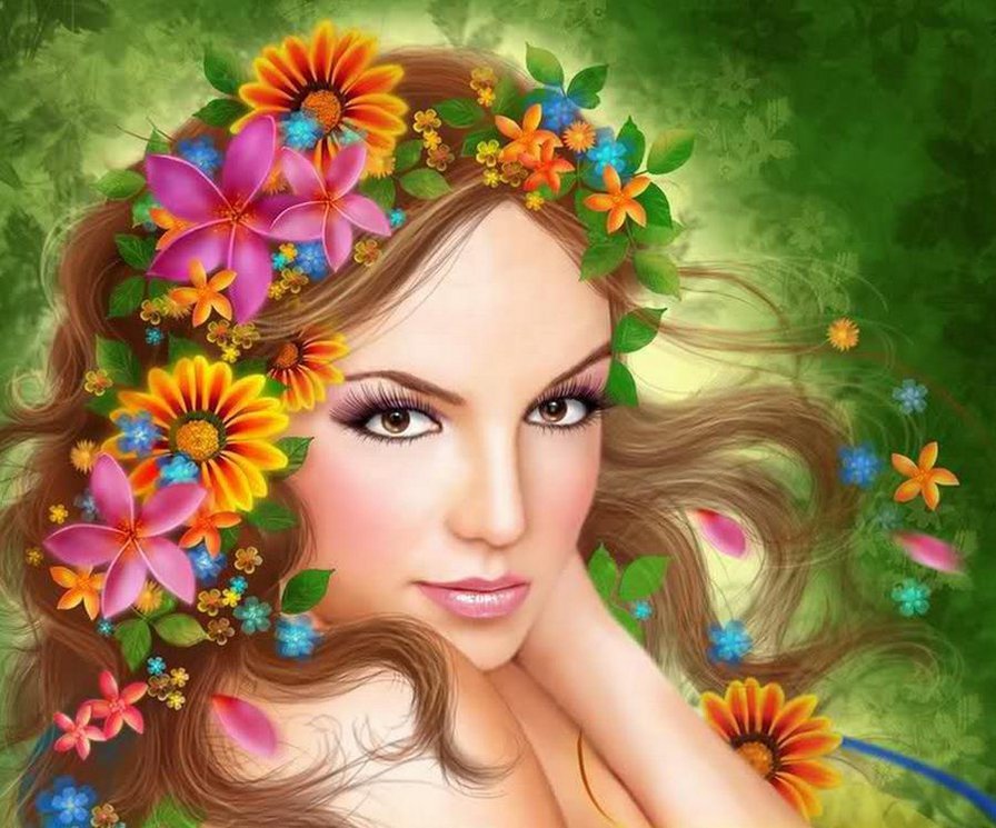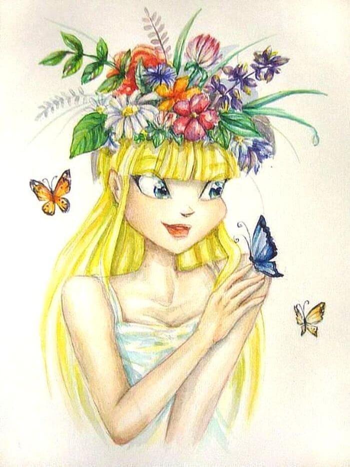 Нарисованная девушка в цветах