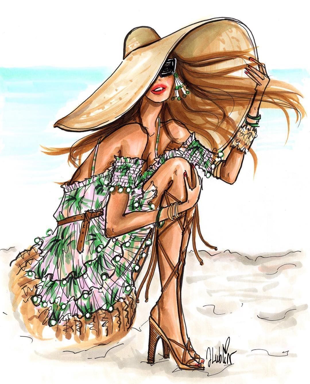 ![Летняя девушка нарисованная]()