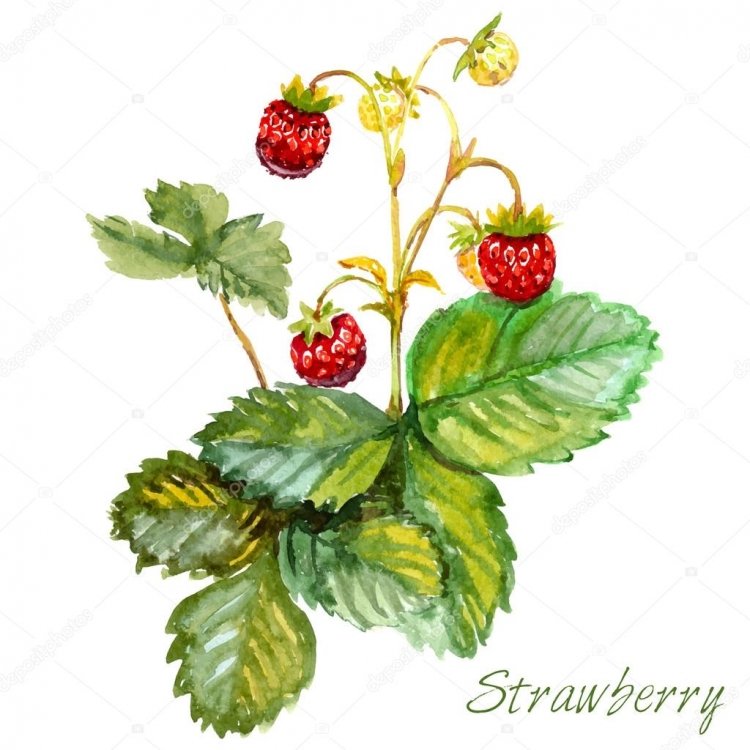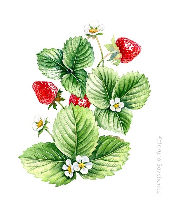 ![Куст клубники рисунок]()