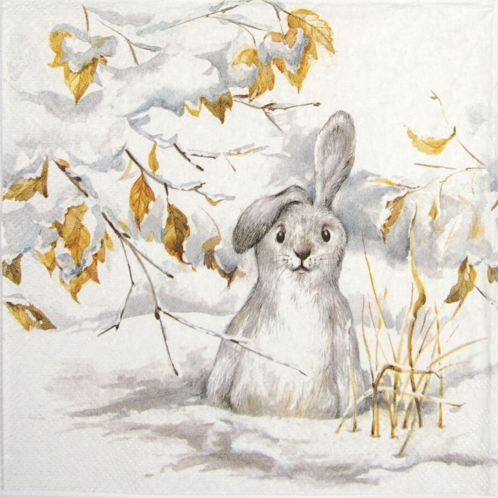 Кролик в снегу для декупажа