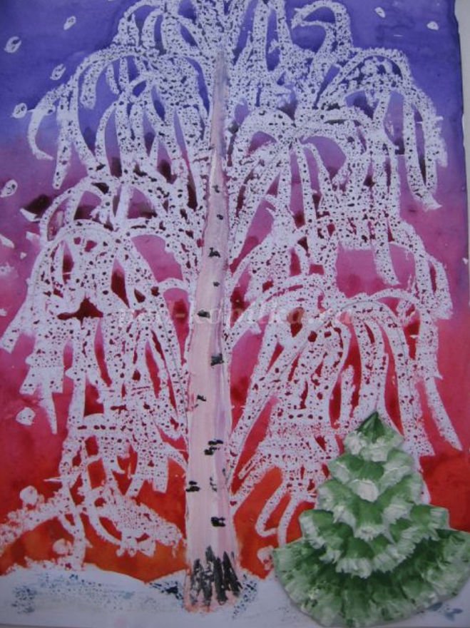 ![Рисование береза зимой в подготовительной группе]()