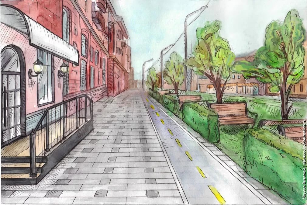![Улица карандашом]()