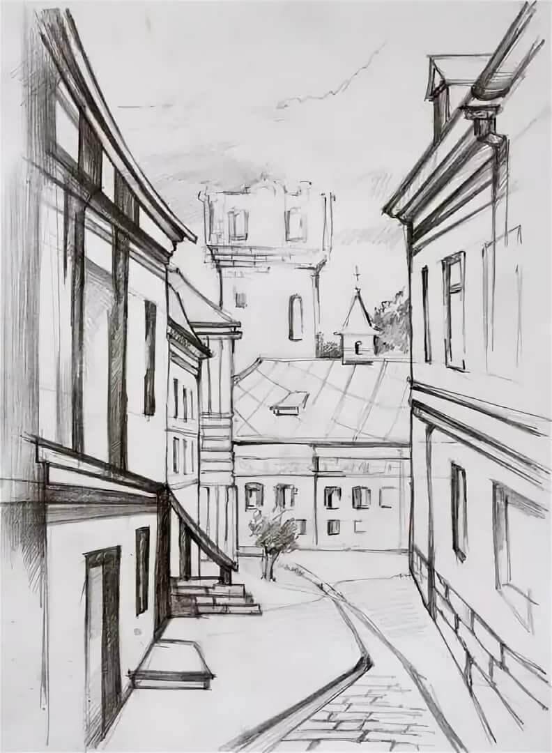 ![Городской пейзаж карандашом]()