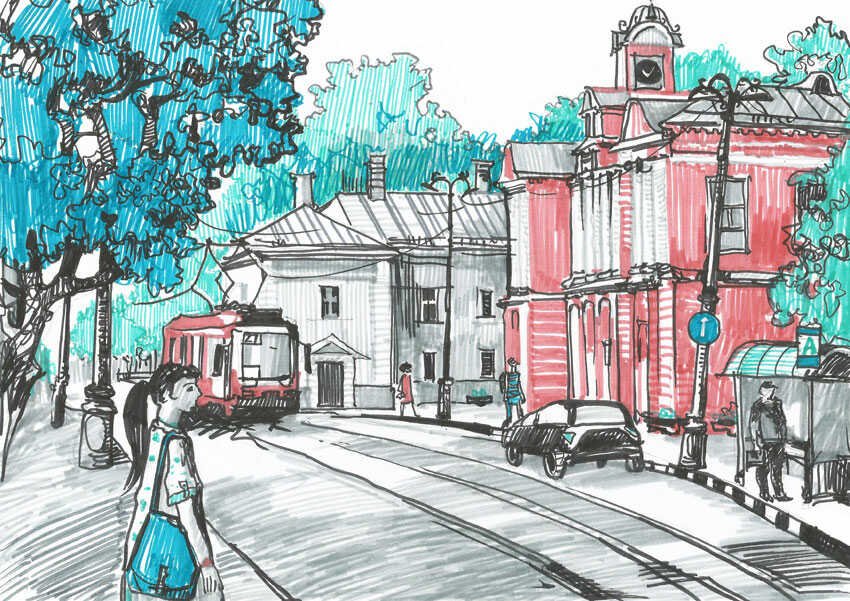 ![Зарисовка городской улицы]()
