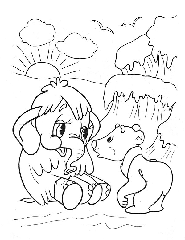 Раскраски с мультика Мамонтенок