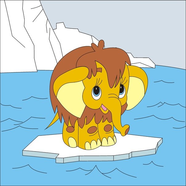 ![Мамонтенок на льдине]()