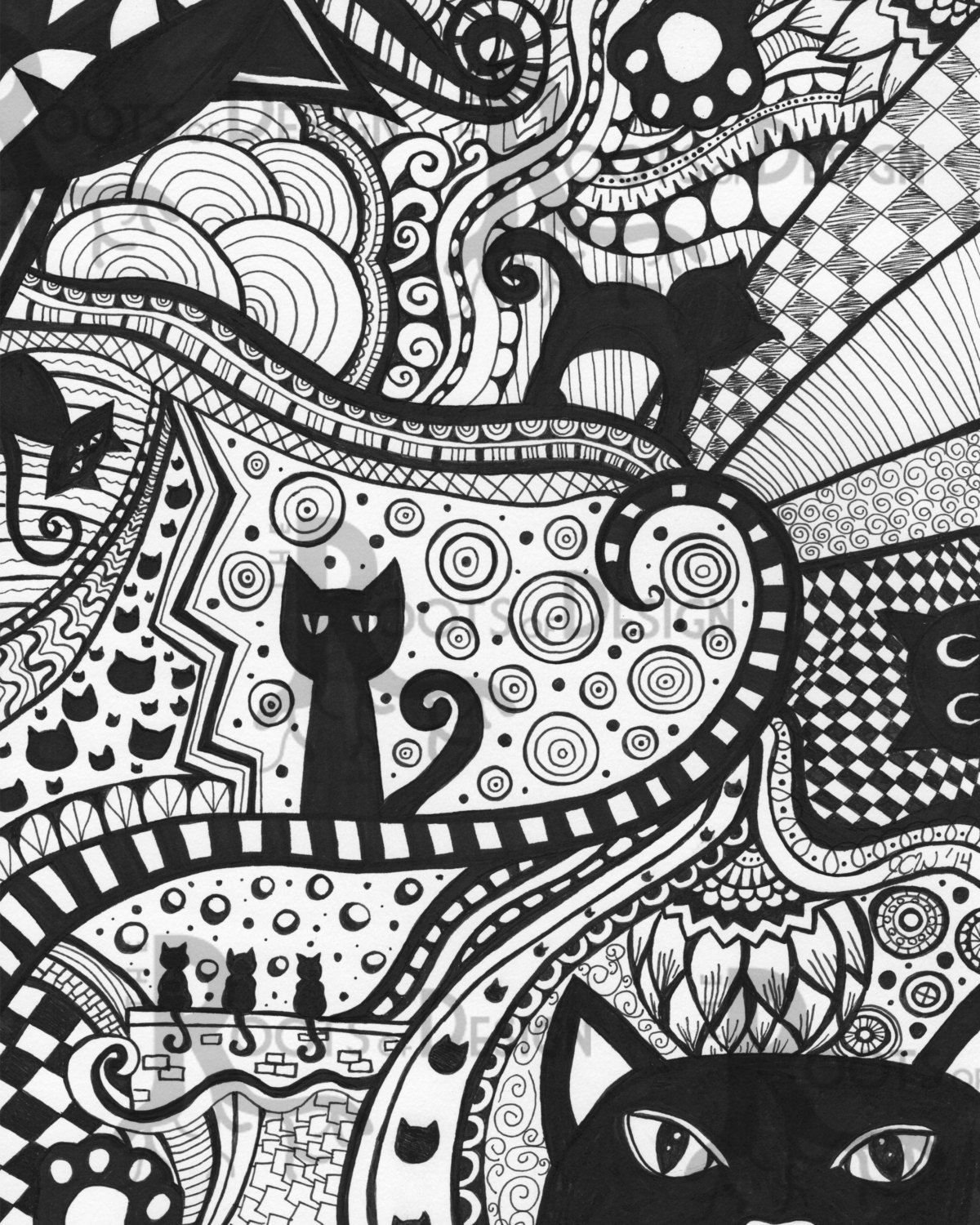Дудлинг и Зентангл кошки