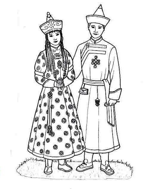 ![Калмыцкий национальный костюм раскраска]()