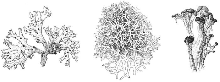 ![Жизненные формы лишайников кладония]()