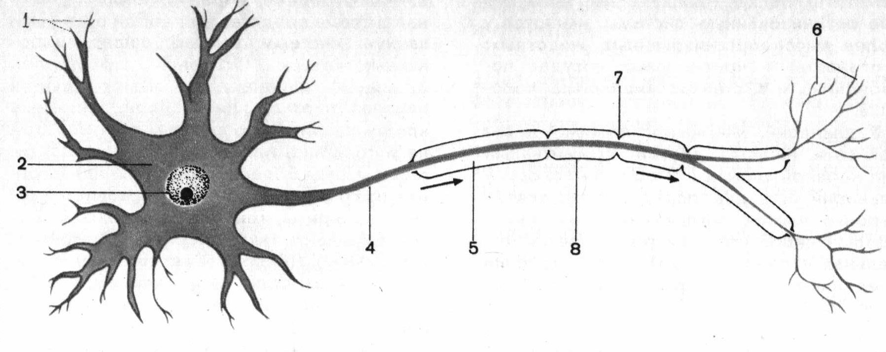![Схема строения нейрона с подписями]()