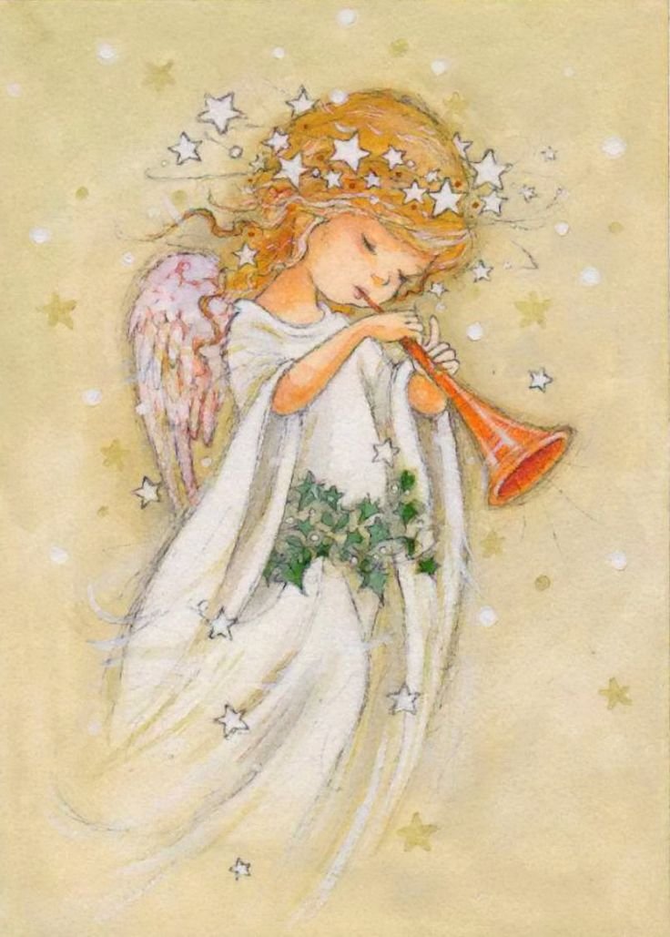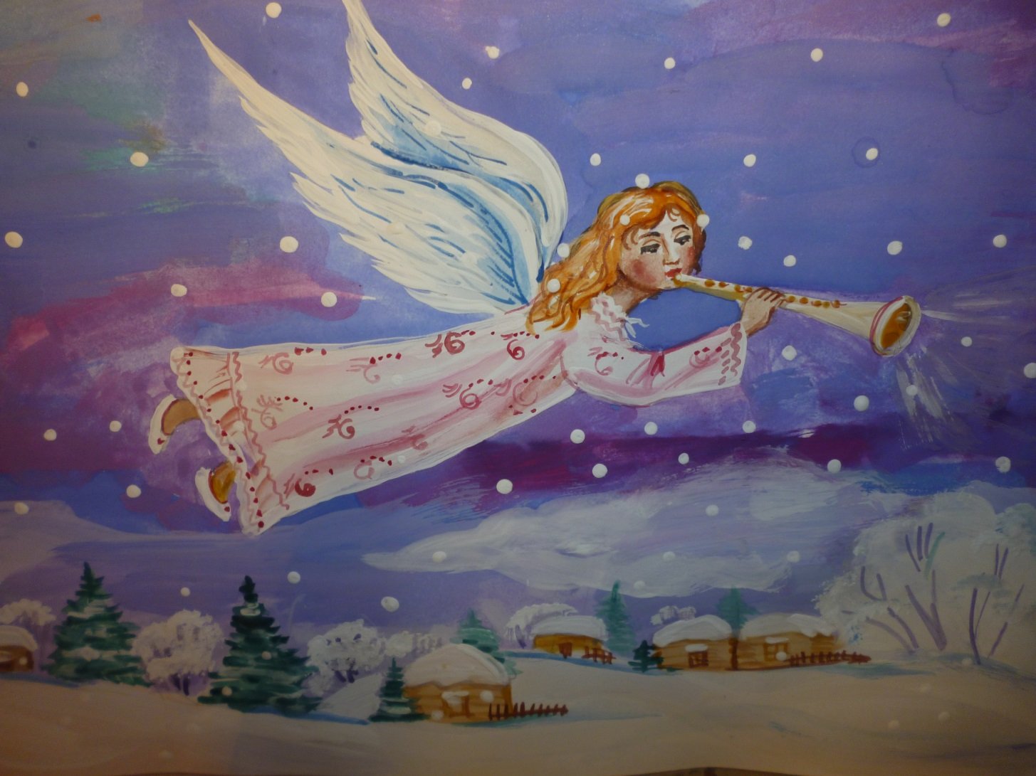 Рождественский ангел на рисунке - это волшебное и нежное создание, символизирующее благодать и мир. Его хрупкое тело украшено яркими крыльями, напоминающими пушистые облака, которые придают ему легкость и грацию. В его руках он держит золотую лиру, из которой исходит нежная мелодия, наполняющая сердца радостью и восхищением. Очаровательное лицо ангела выражает мир и счастье, словно он несет весть о замечательном событии – Рождестве Христовом. Этот рисунок является прекрасным украшением для праздничной атмосферы, подарком близкому человеку и символом веры и надежды в доброту и светлое будущее.