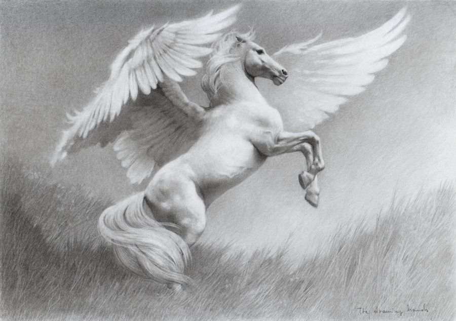 Рисунок карандашом лошадь с крыльями