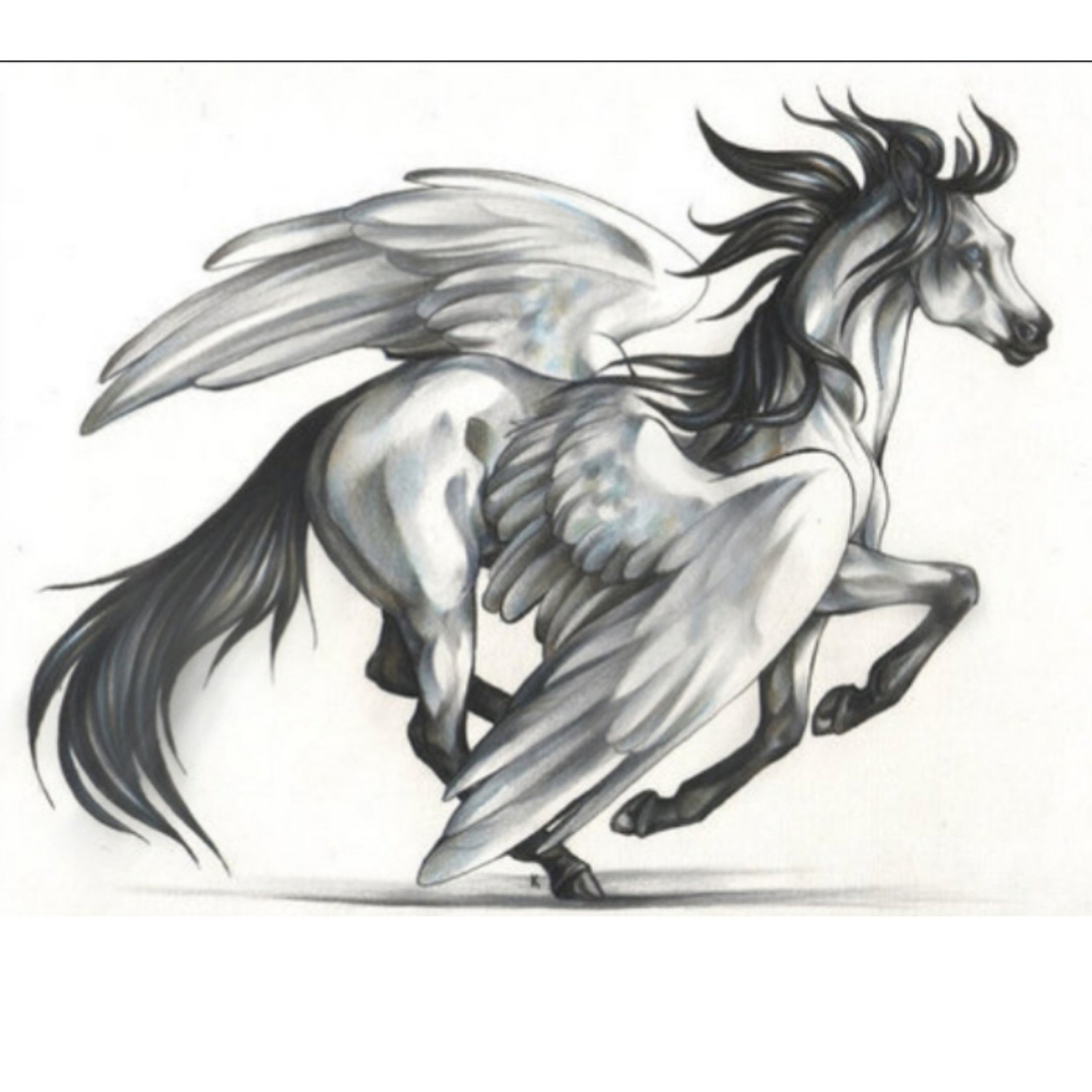 ![Лошадь с крыльями карандашом]()