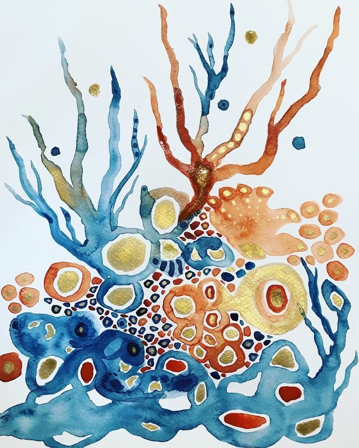 Морские кораллы акварелью