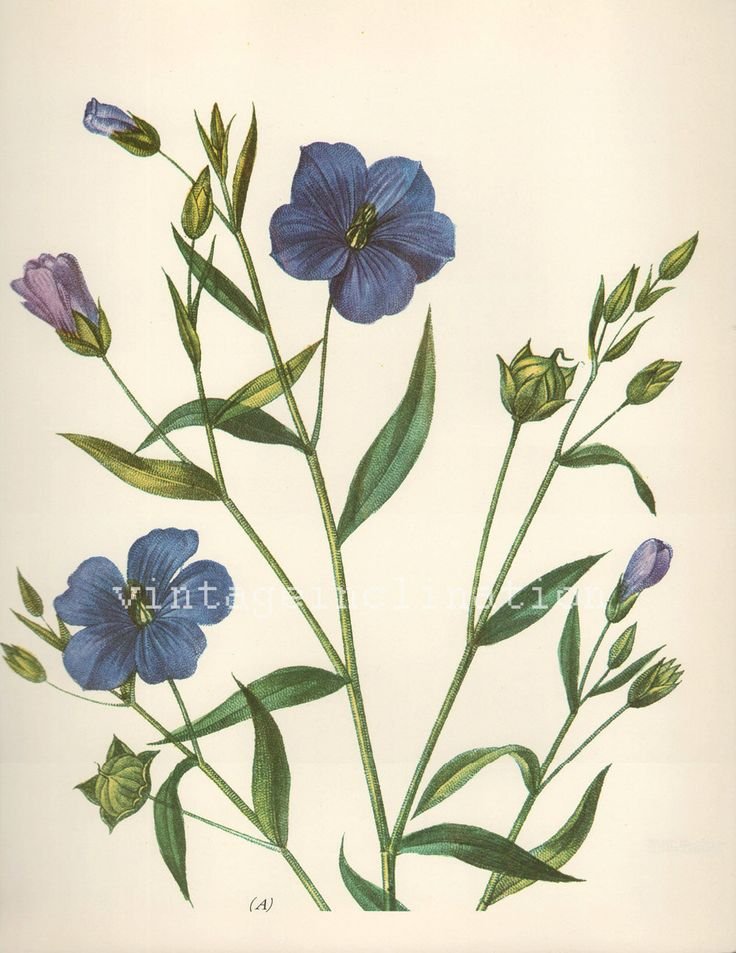 ![Лен Ботаническая иллюстрация]()