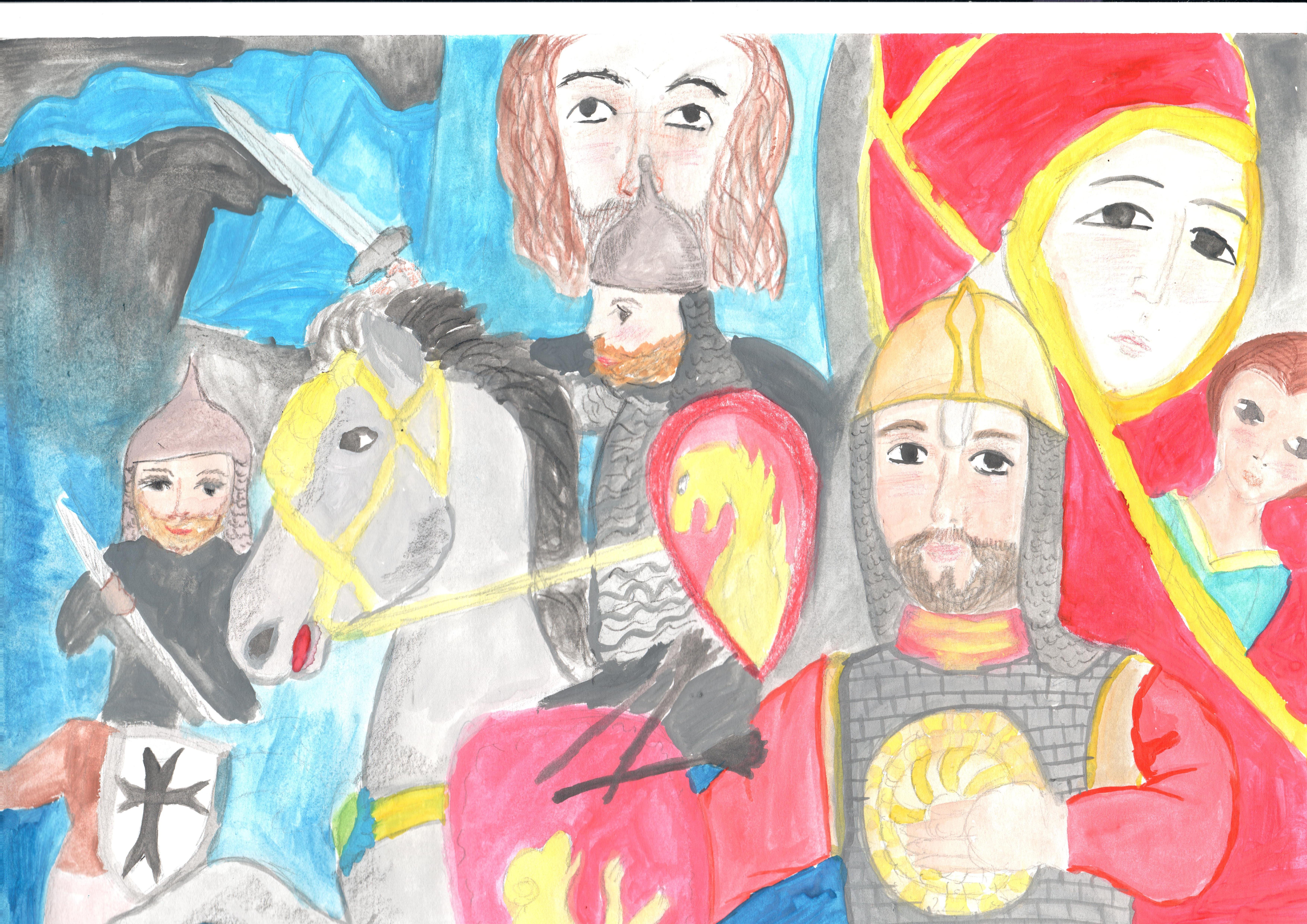 ![Детский рисунок Александра Невского Ледовое побоище]()