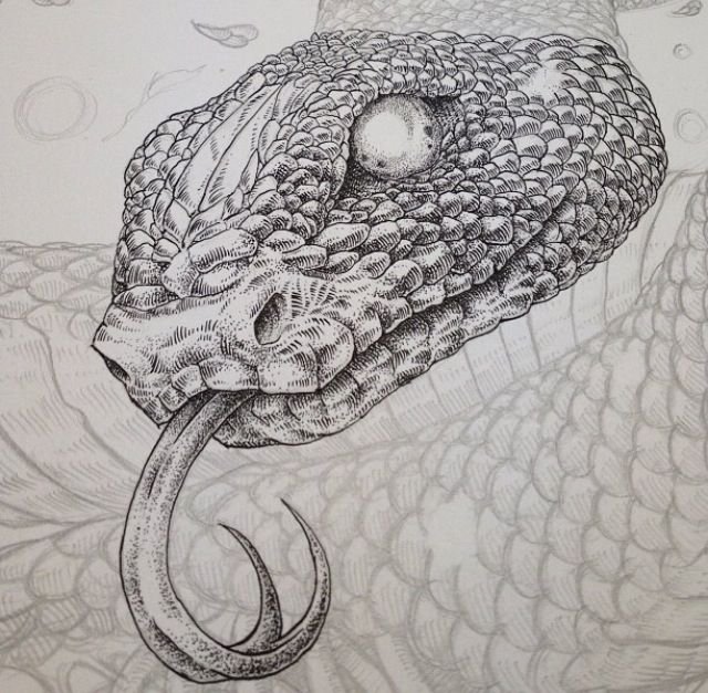 ![Змея арт карандашом]()