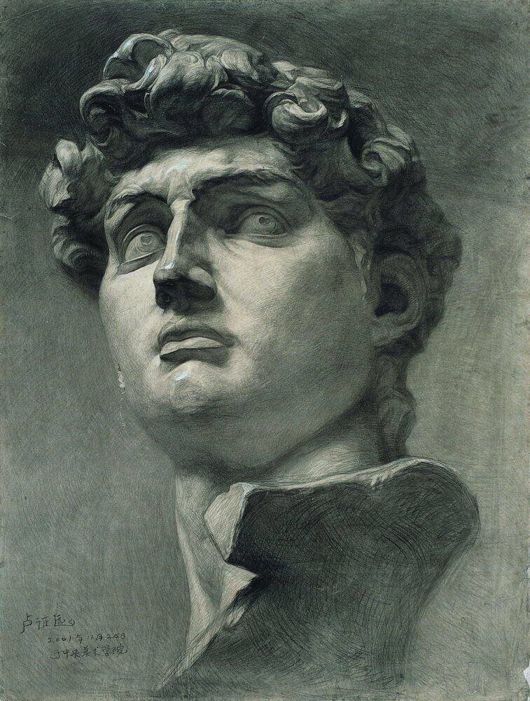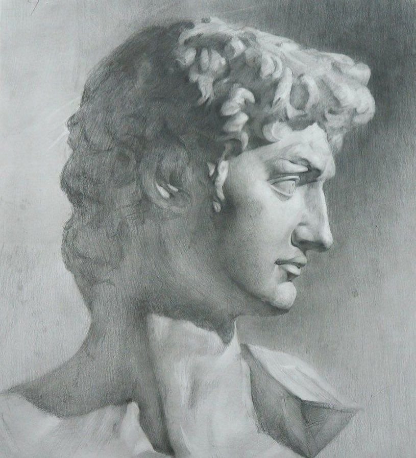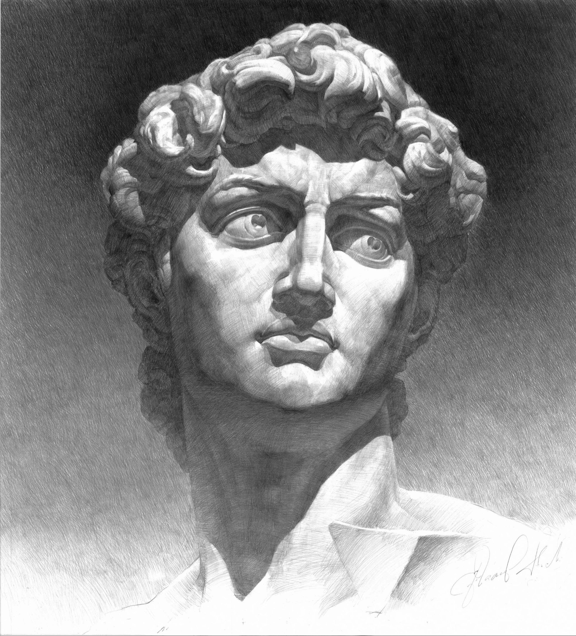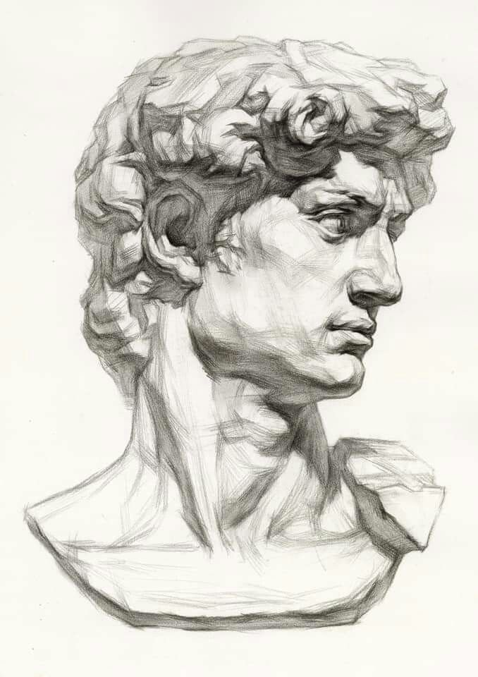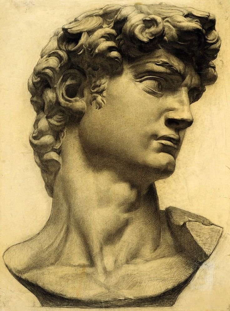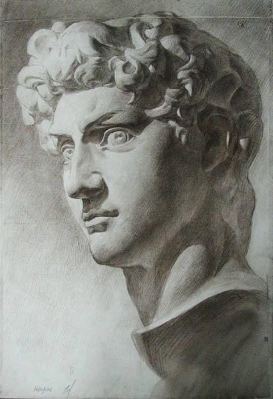 ![Давид Микеланджело голова рисунок]()