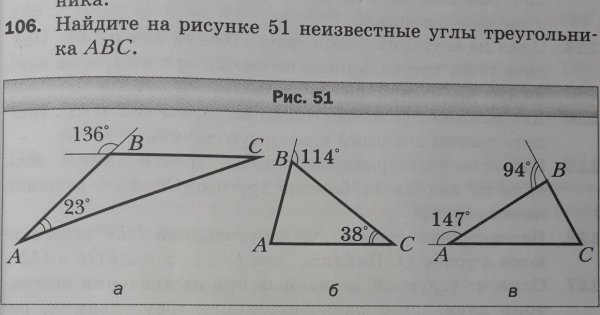 Найдите на рисунке 51 неизвестные углы треугольника ABC