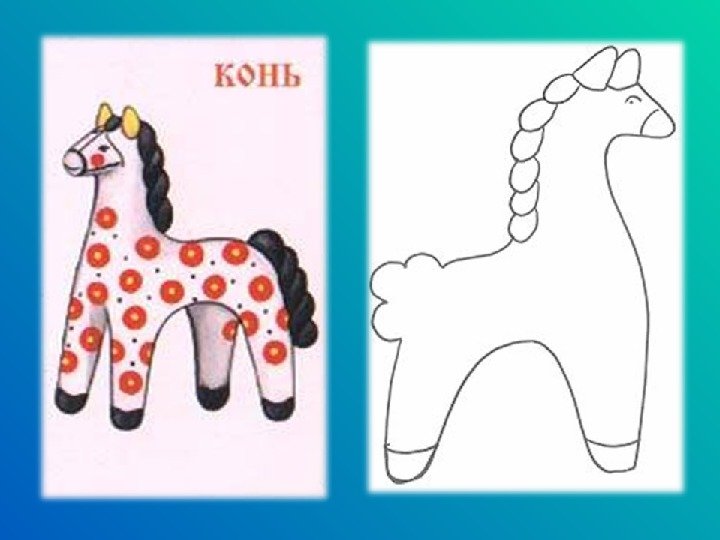 ![Дымковская игрушка конь нарисовать]()