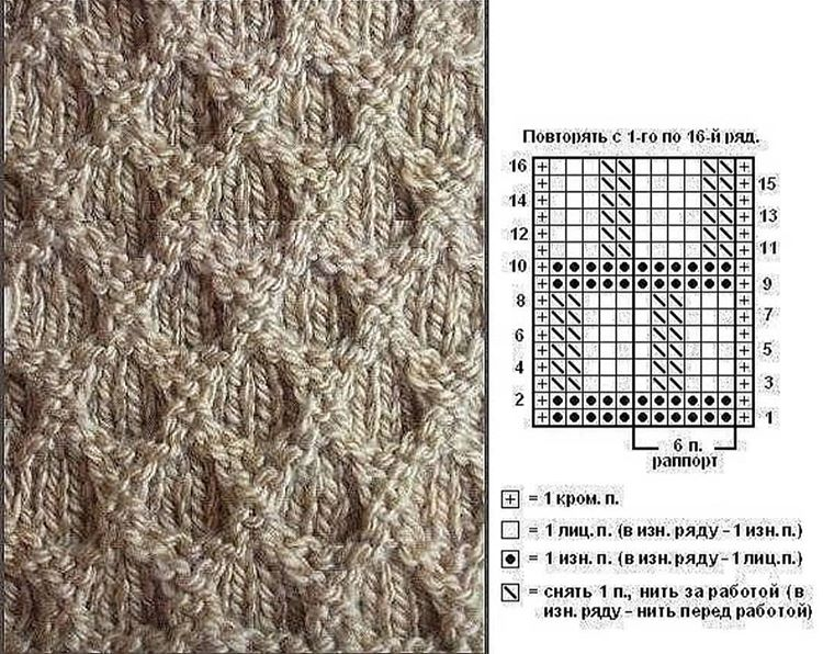 Вязание спицами узоры из лицевых и изнаночных со схемами