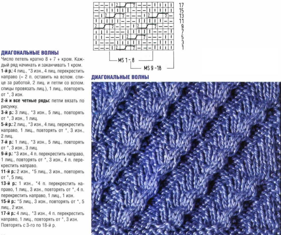 Узоры спицами лицевые и изнаночные петли схемы