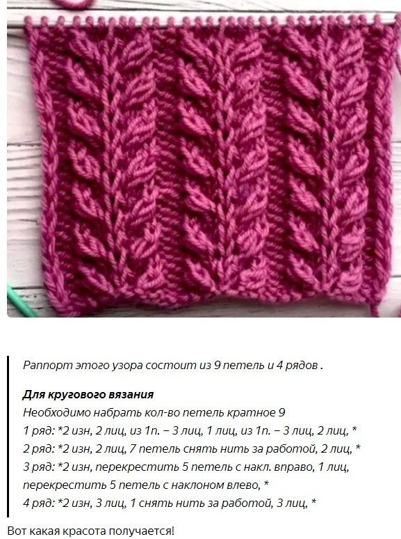 Узор для толстой пряжи для вязания спицами со схемами