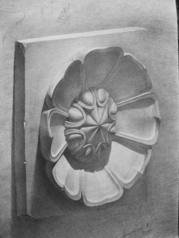 ![Академический рисунок гипсовая розетка]()