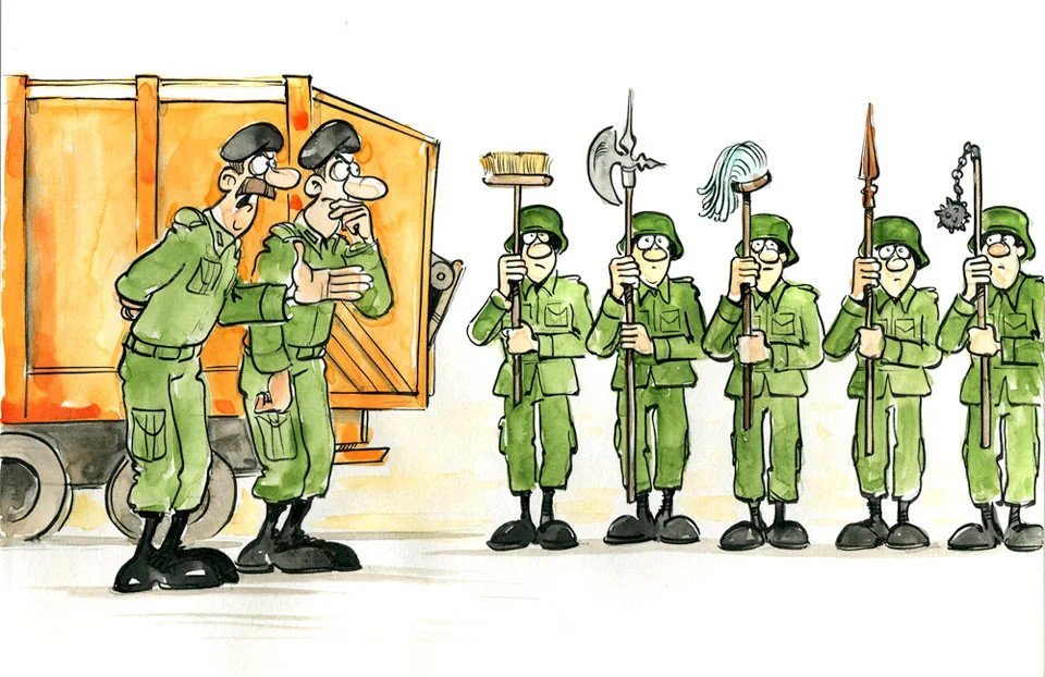 ![Военные сборы карикатура]()