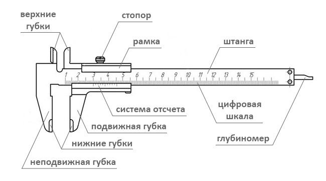![Штангенциркуль ШЦ-1 схема с обозначениями]()