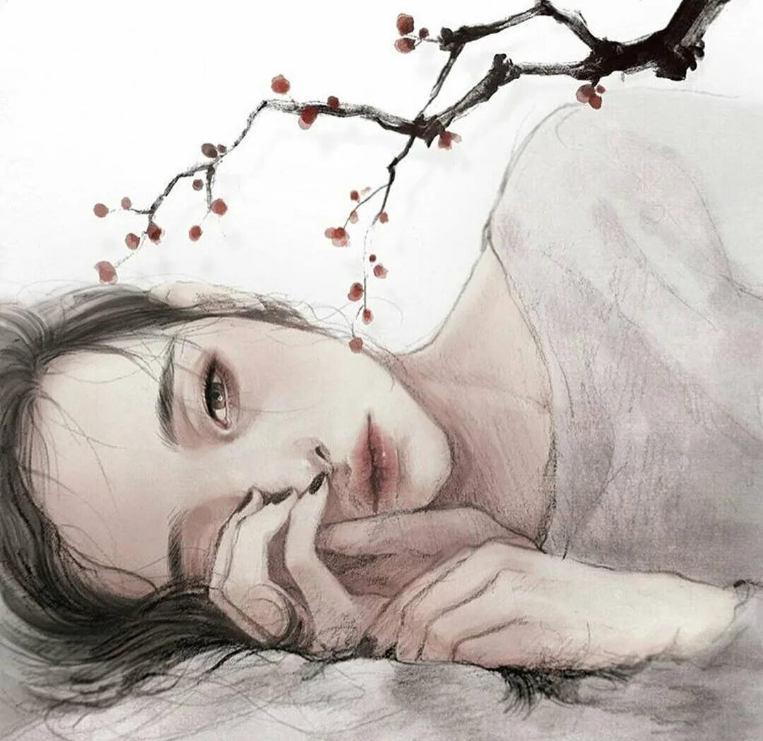 Грустная девушка рисунок