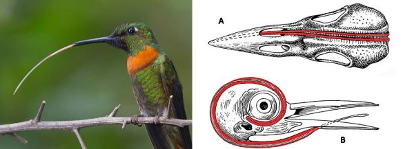 ![Дятла язык обернут вокруг черепа]()