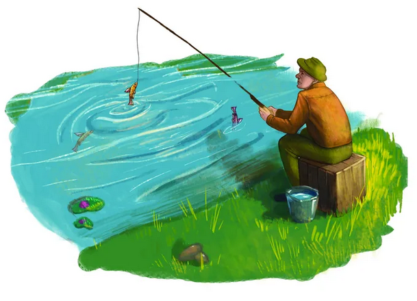 Описание рисунка "Рыбалка": На этом живописном рисунке изображена картина идеального рыболовного дня. Главный герой стоит на небольшой лодке, окруженной прозрачной водой озера или реки. В его руках удерживается удочка с наживкой, готовая поймать самую большую рыбу. Солнце светит ярко на небе, создавая теплую атмосферу, а зеленые холмы и деревья придает обстановке приятную ауру. Наблюдая за этим рисунком, можно почувствовать спокойствие и умиротворение, так как он передает момент уединения с природой и привносит частичку радости от рыбалки. Этот рисунок станет прекрасным украшением для любого помещения, а также может быть отличным подарком для любителей рыбной ловли.