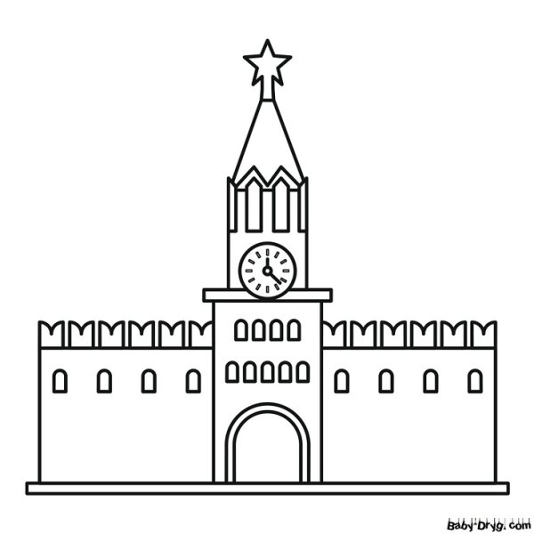 Спасская башня Московского Кремля раскраска